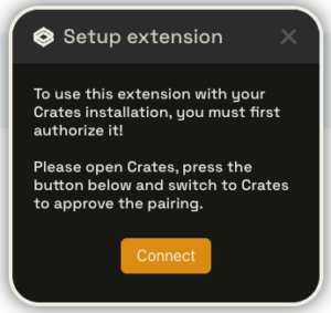 - Click the extension to pair with your Crates installation. Go back to Crates desktop: a popup will open to approve the connection.