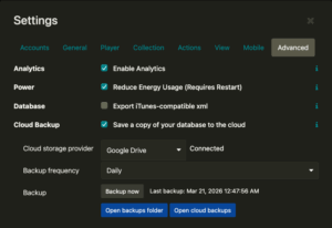 Your database contains your entire music collection metadata, organization, and activity. With cloud backups enabled, you’re protected against data loss from system crashes, lost devices, or accidents. Your database will be able to be restored at another computer and you keep your archive forever.